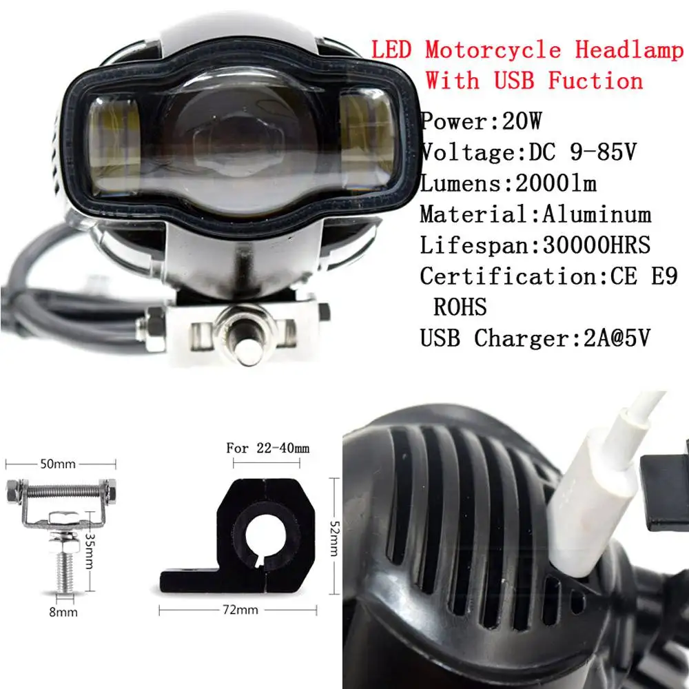 Related Product for 22-40mm CE Universal Motorcycle Car headlight lamp LED Super Bright Fog light USB Charger For Harle